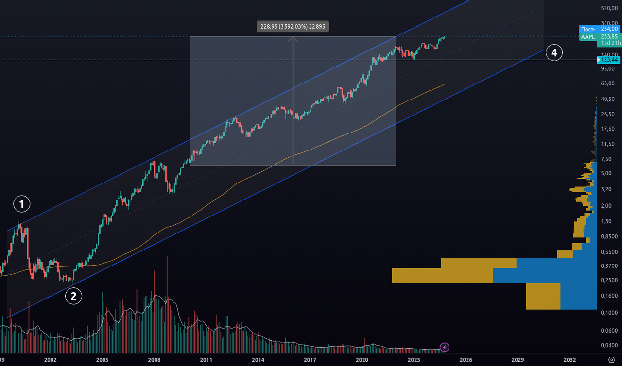 Например, акции Apple растут последние 12 лет. Если бы вы купили их в 2010 году и держали до сегодняшнего, можно было бы заработать +3500% без особых усилий.
